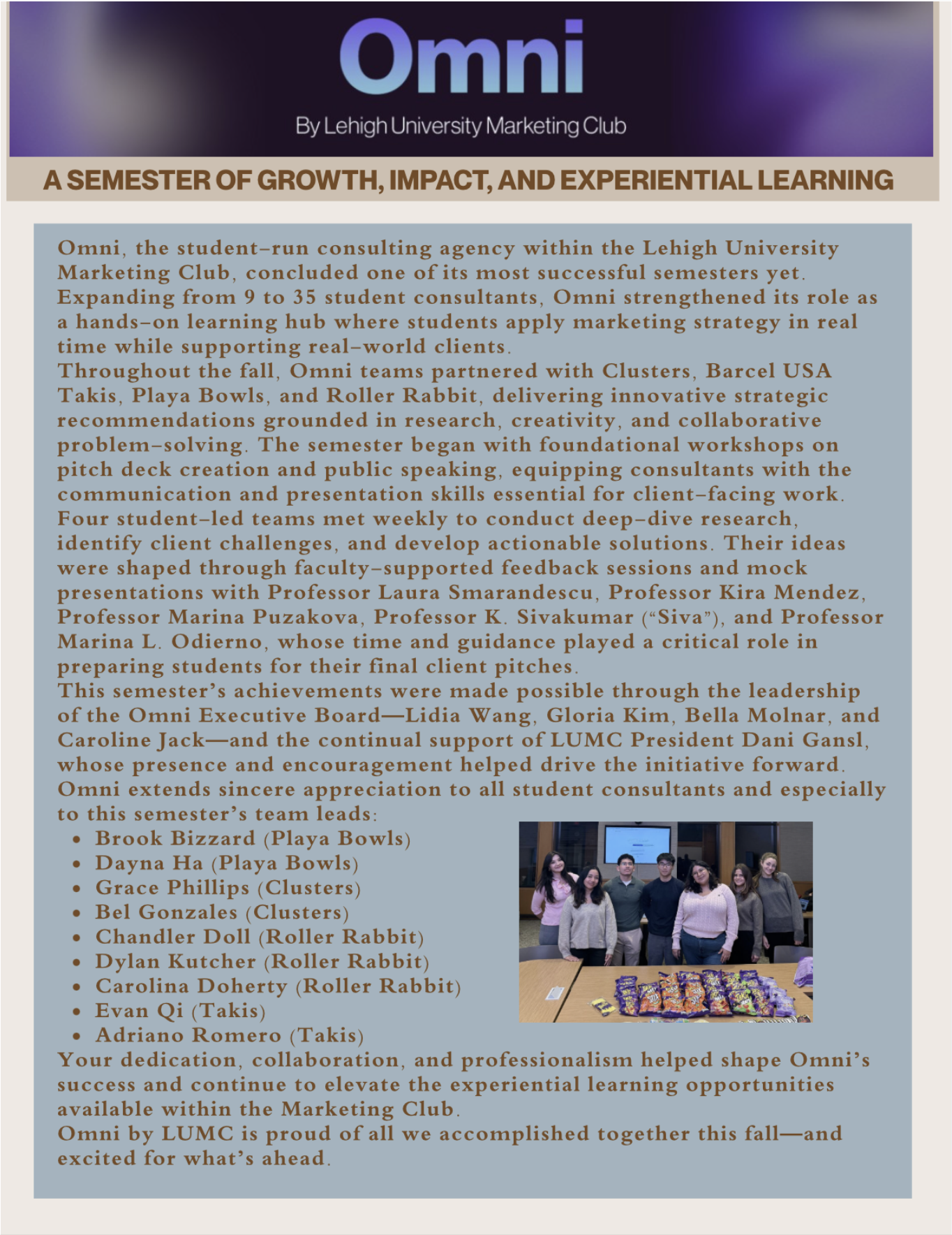 Fall Newsletter This highlights the successful Fall semester of learning, networking, and community we had. We hope you enjoy!